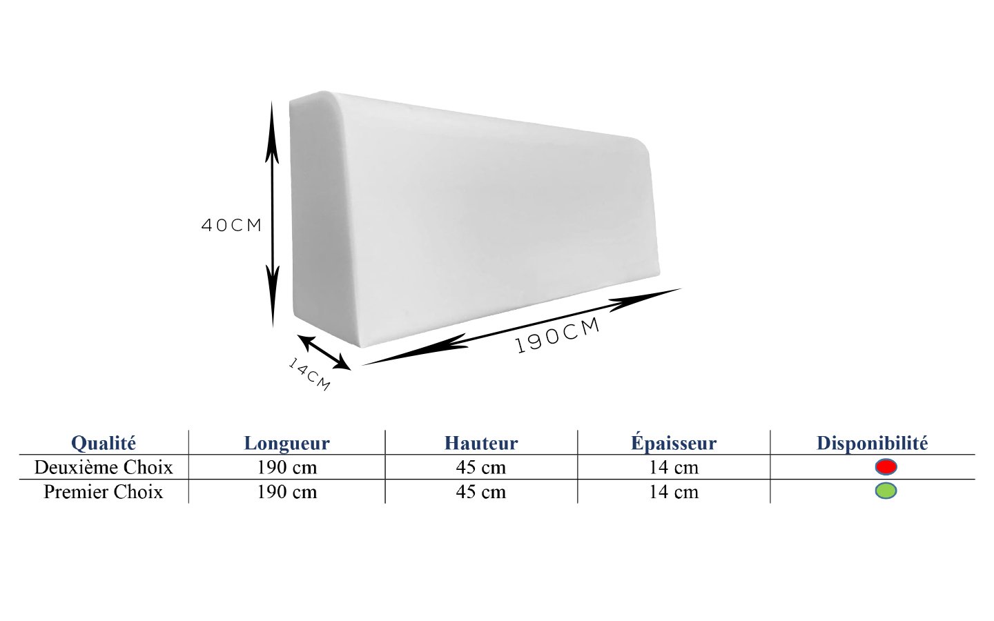 Nos dossiers Arabesques (forme de R) en Mousse Polyuréthanne incarnent l’alliance parfaite entre confort, design et fonctionnalité, transformant vos espaces de détente en véritables havres de bien-être. Conçus avec une mousse de polyuréthane expansé de haute qualité, avec une longueur de 190 cm, une largeur de 14 cm et une hauteur de 45 cm, ils offrent une ergonomie exceptionnelle grâce à leur forme enveloppante, assurant un maintien optimal pour une posture saine et relaxante. Disponibles en Premier Choix, idéale pour un usage intensif et une durabilité accrue, garantit une fermeté et une conservation de la forme incomparables.