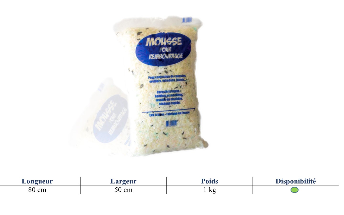 La mousse broyée Super Siesta est un matériau polyvalent, fabriqué à partir de mousse de qualité, découpée en petits flocons et conditionnée en sachets de 01 Kg pour une utilisation pratique et flexible. Elle la solution idéale pour divers projets de rembourrage et de garnissage et les réparations. Légère, souple et facile à manipuler, elle convient parfaitement aux professionnels de l’ameublement, de la literie ou de la confection d’articles décoratifs.