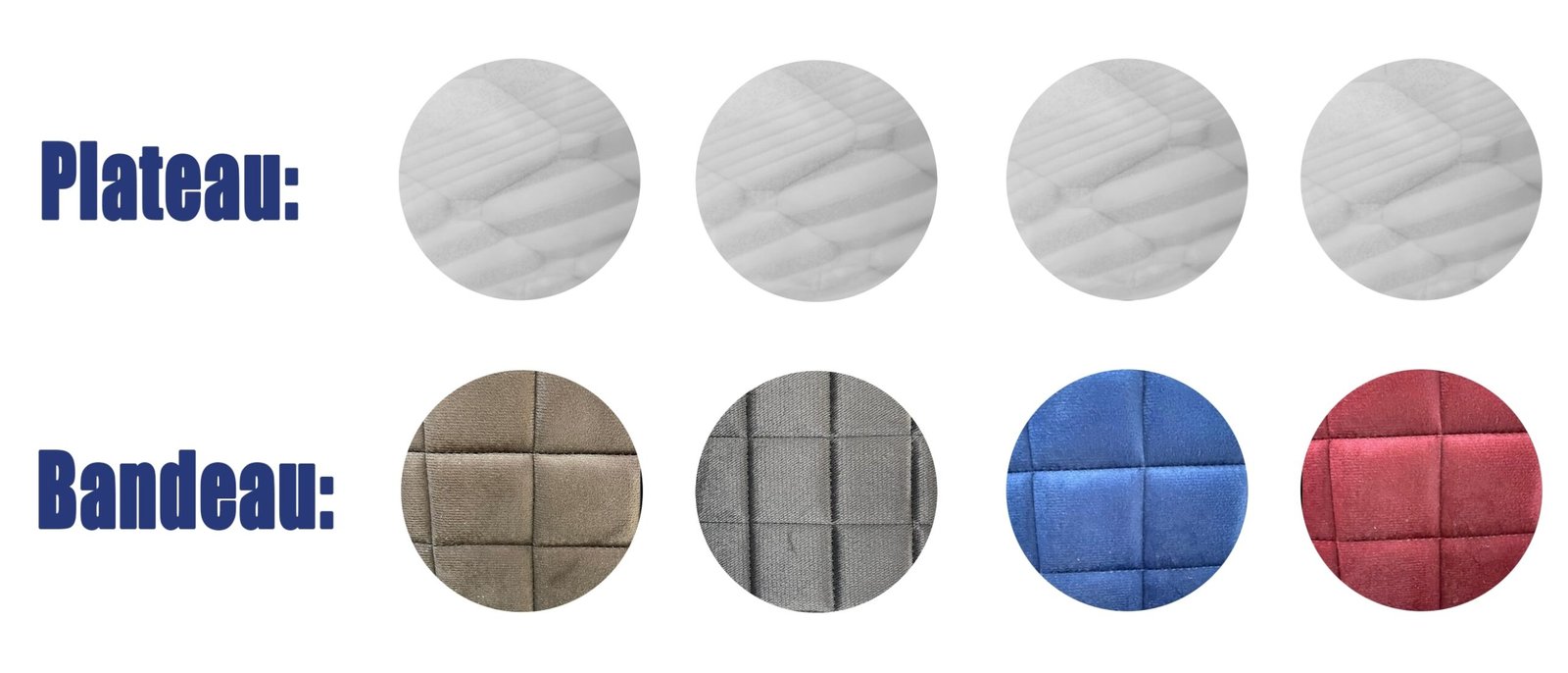 - Une bande de 25 cm réalisée dans le même tissu que le garnissage, piqué avec une couche en Mousse Polyuréthanne d’une épaisseur de 0,5 cm et d’une densité de 12/14 kg/m³ (Veuillez voir le lien suivant : Matelas en Mousse Polyuréthanne de Troisième Choix : 12/14 ) , associée à un tissu non tissé de 40 g/m² .