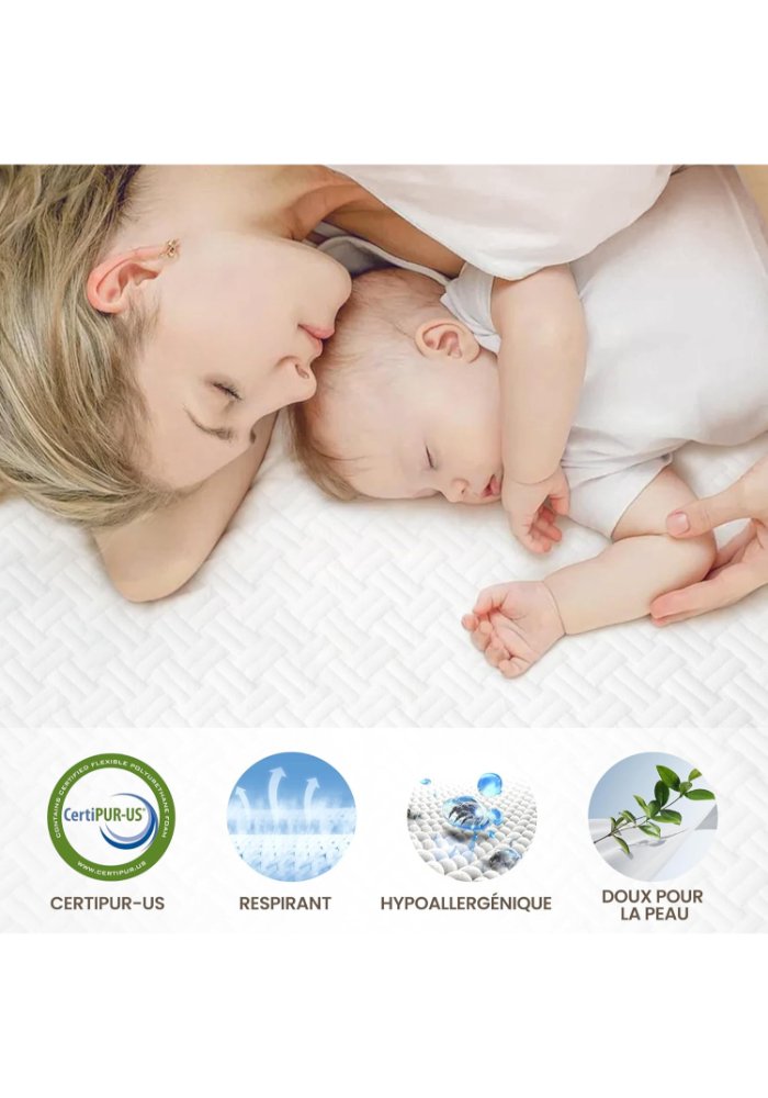 Conçue pour les dormeurs à la recherche d’un soutien Souple et structuré, la Gamme Surmatelas Souple Super Siesta, grâce a sa Mousse Polyuréthanne de Premier Choix de densité 28/30 (Veuillez voir le lien suivant : Matelas en Mousse Polyuréthanne de Premier Choix : 28/30), assure un alignement optimal de la colonne vertébrale, idéale pour prévenir les maux de dos et les douleurs articulaires. Fabriqué avec une mousse de densité 28/30 Kg/m³, ce Sur-matelas offre une surface Mi-Ferme qui soulage efficacement les points de pression. Ergonomique et silencieux, il garantit un confort durable et une qualité de sommeil inégalée. Avec une housse déhoussable et un tissu en coton hypoallergénique, ce sur-matelas combine hygiène, praticité et bien-être. Recommandé pour les utilisateurs ayant des besoins spécifiques de soutien souple, il transforme votre matelas en une base parfaite pour des nuits réparatrices.